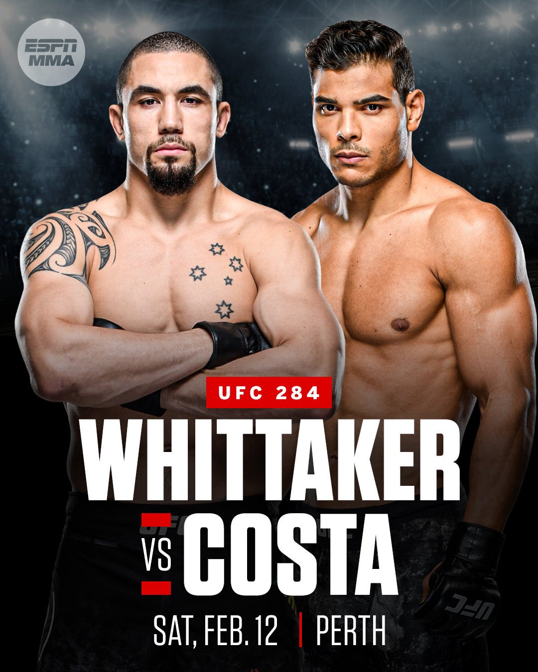 Multiple people with knowledge of the promotions plans confirmed to MMA Fighting that UFC 284 is expected to take place at the RAC Arena in Perth Australia on Feb. Before Whittaker and Costa meet at UFC 284 the Middleweight crown will be battled over between Adesanya and his old kickboxing rival Alex Pereira at UFC 281 on Nov. Ad Find Buy Tickets Online at Vivid Seats.
